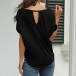 Fashion Solid Color Short Sleeve V-neck High-low Hem T-shirt