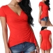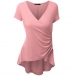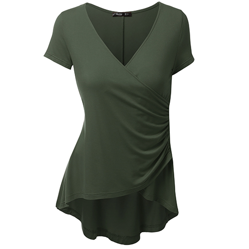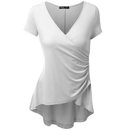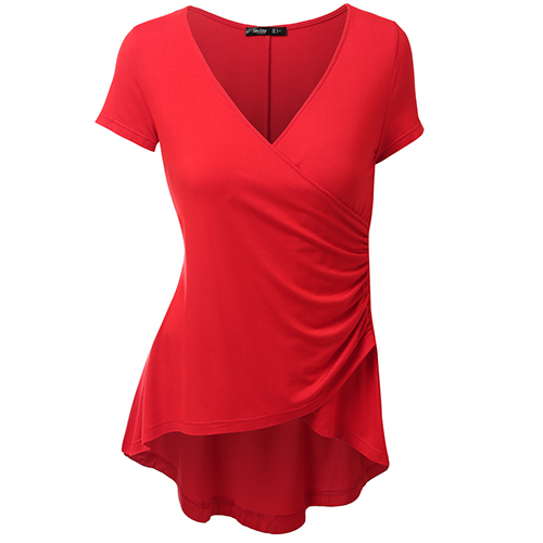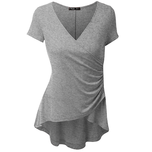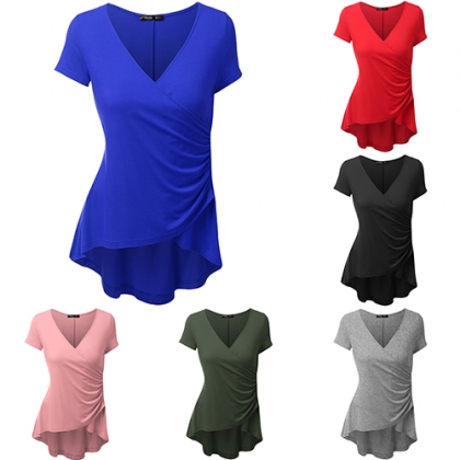 styled with short sleeve,v-neck and a high-low hem,this little item can keep you comfy all day as well as give you