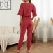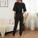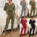 Fashion Solid Color Short Sleeve V-neck High Waist Jumpsuit