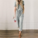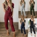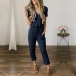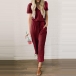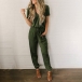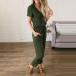 Fashion Solid Color Short Sleeve V-neck High Waist Jumpsuit