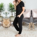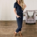 Wanna try a different style? Then we suggest you choosing this jumpsuit! Solid color style,finished with short sleeve,v-neck and high waist design,this piece can showcase your slender figure while it maintains the comfy and style. So why not take interest in it?