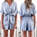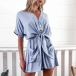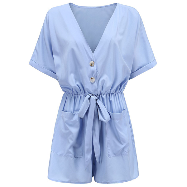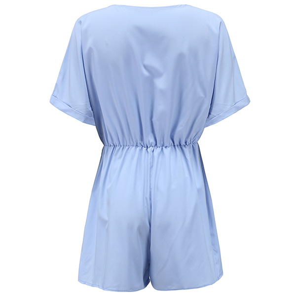 Fashion Solid Color Short Sleeve V-neck High Waist Romper
