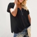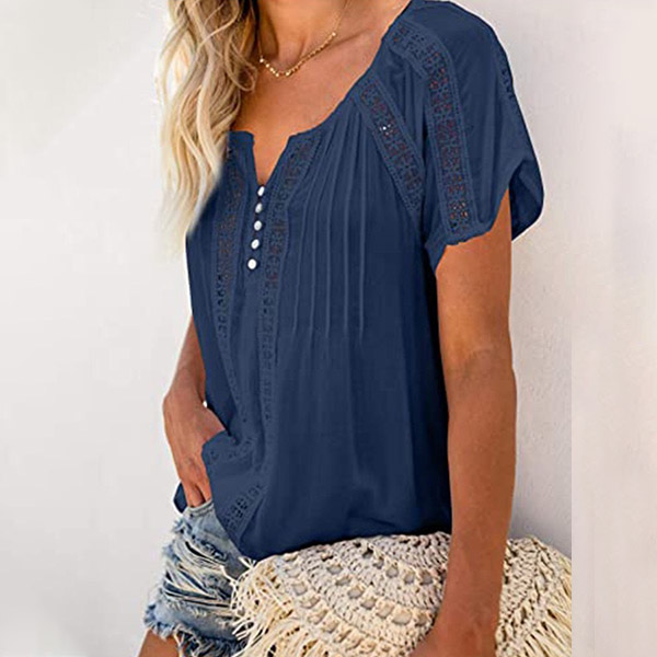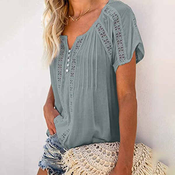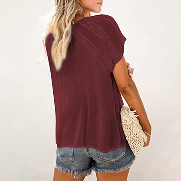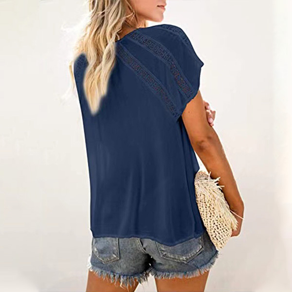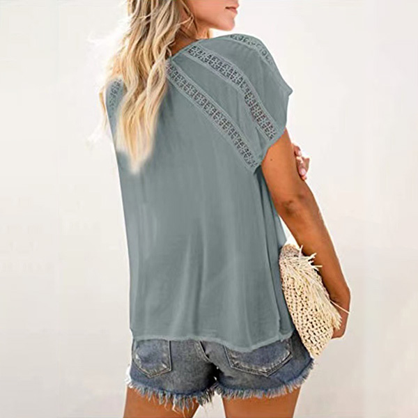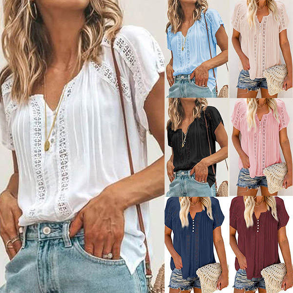 This wonderful top that combines of cozy and stylish vibes is worth to have a place in your wardrobe. Solid color style,the v-neck and hollow out details will lend you a dash of flirty and sultry vibes,while its soft fabric and loose silhouette design can ensure you an all-day comfort. For these summer days,this piece can be your wise choice.