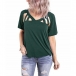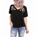 Fashion Solid Color Short Sleeve V-neck Hollow Out T-shirt