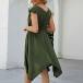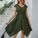 Fashion Solid Color Short Sleeve V-neck Irregular Hem Dress