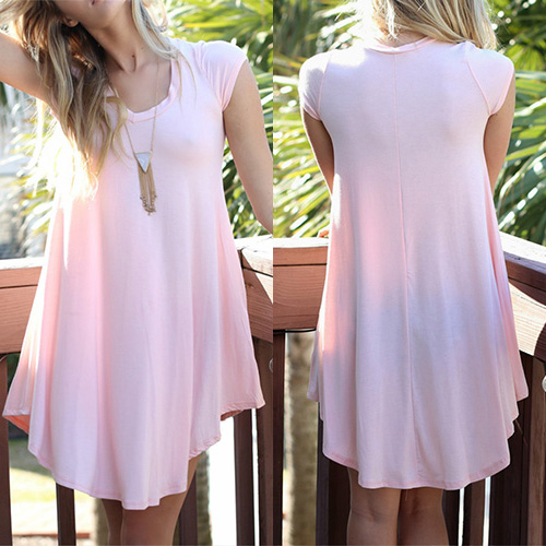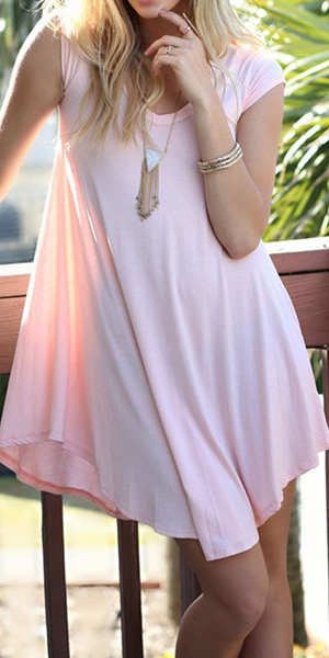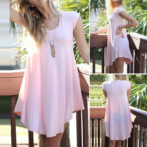 Solid color style,with short sleeve,v-neck and irregular hem design,simple and stylish.
