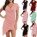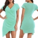 Fashion Solid Color Short Sleeve V-neck Irregular Hem Slim Fit Dress