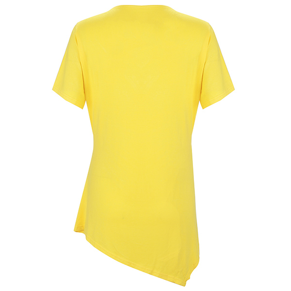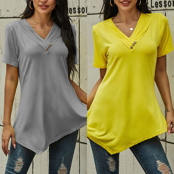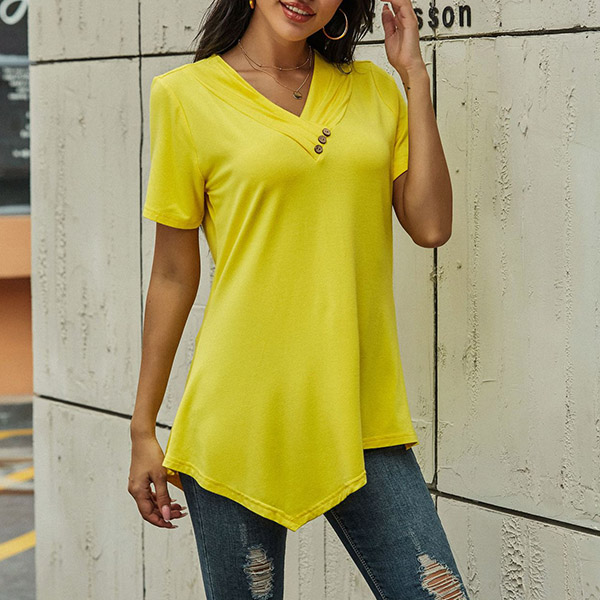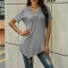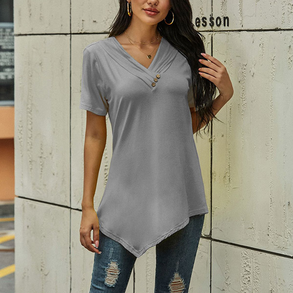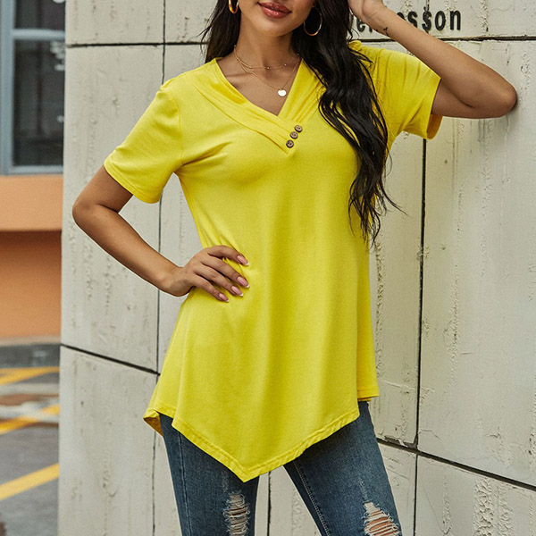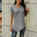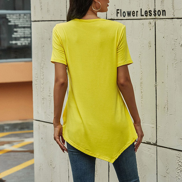 Fashion Solid Color Short Sleeve V-neck Irregular Hem T-shirt