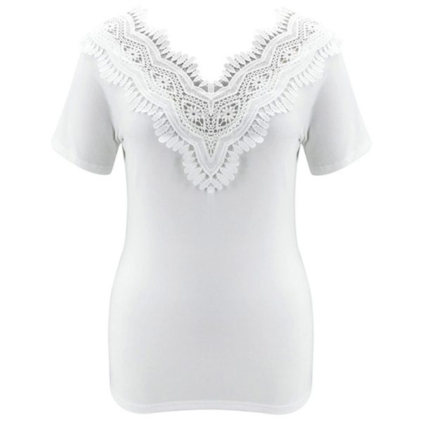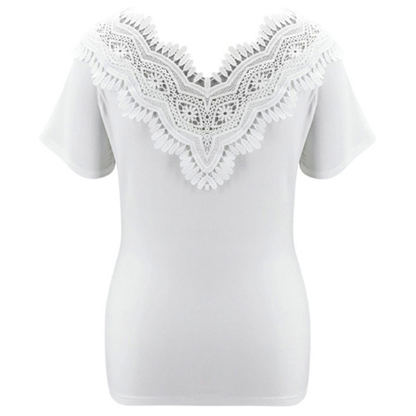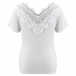 Fashion Solid Color Short Sleeve V-neck Lace Spliced T-shirt