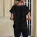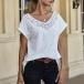 Fashion Solid Color Short Sleeve V-neck Lace Spliced T-shirt