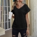 Thanks to the super soft,breathable fabric and loose silhouette,you can have a comfortable day in this t-shirt. The v-neck and lace spliced details will add some extra charm. No matter what kind of bottoms you pair with,it can hardly go wrong. This short-sleeved t-shirt is worth to be your wardrobe staple in these summer days.