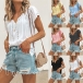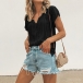 Fashion Solid Color Short Sleeve V-neck Lace Spliced T-shirt