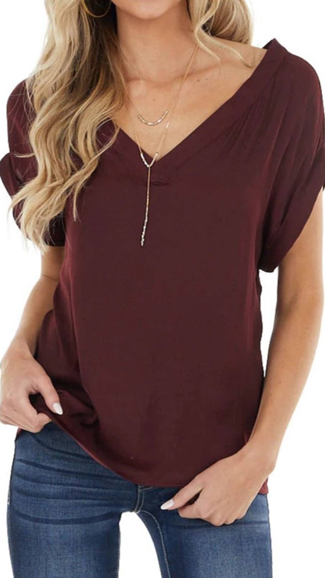 As for a simple,laid-back yet fashionable daily look,this t-shirt can be your perfect partner. Comes with a solid color,finished with short sleeve,v-neck and a loose silhouette,this t-shirt definitely can give you a comfortable day. You can simply match with a jeans to start your wonderful day. Different colors for your optional.