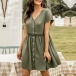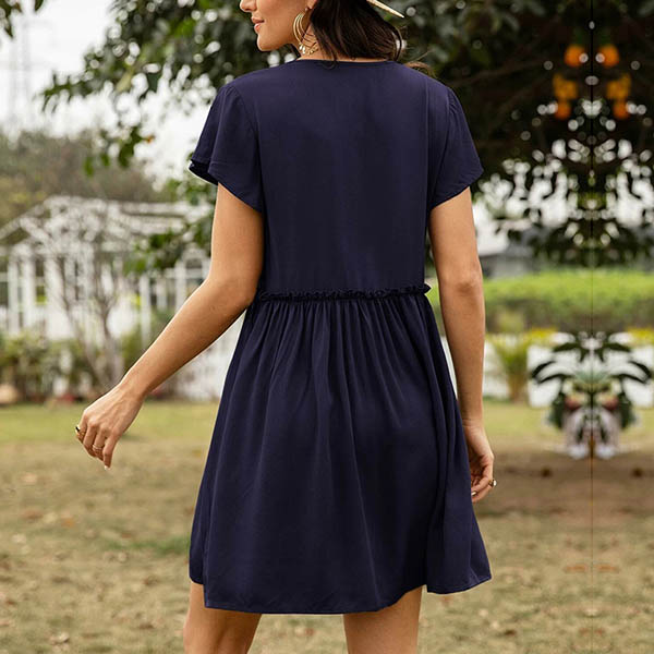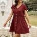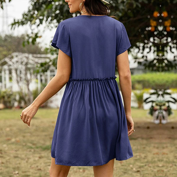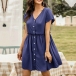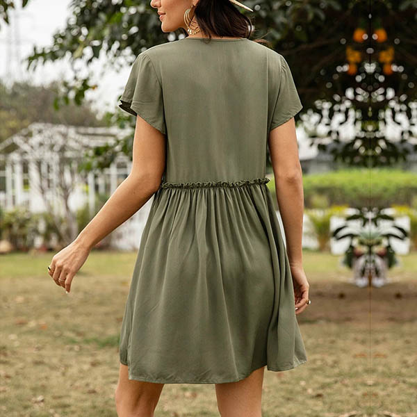 Fashion Solid Color Short Sleeve V-neck Single-breasted Dress