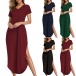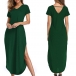 Fashion Solid Color Short Sleeve V-neck Slit Hem Dress