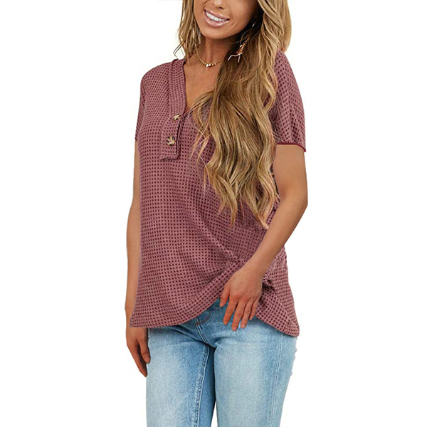 Fashion Solid Color Short Sleeve V-neck T-shirt