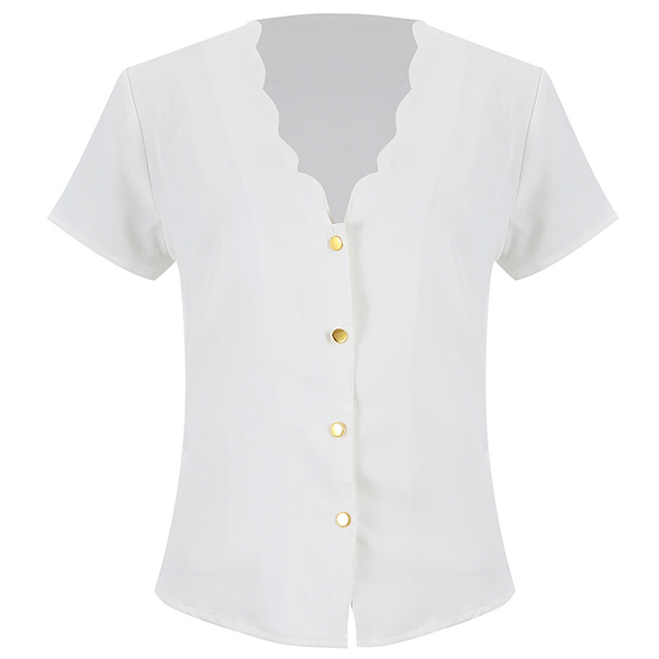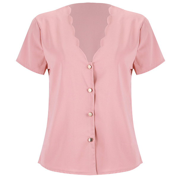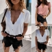 Fashion Solid Color Short Sleeve V-neck Top