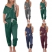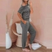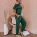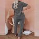 Fashion Solid Color Short Sleeve V-neck Top + Pants Two-piece Set