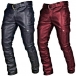 These men's pants feature a solid color design with side patch pockets and are made of artificial leather (PU), creating a sleek and edgy look.
