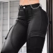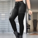 Fashion Solid Color Side Patch Pockets Artificial Leather PU Skinny Pants