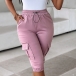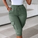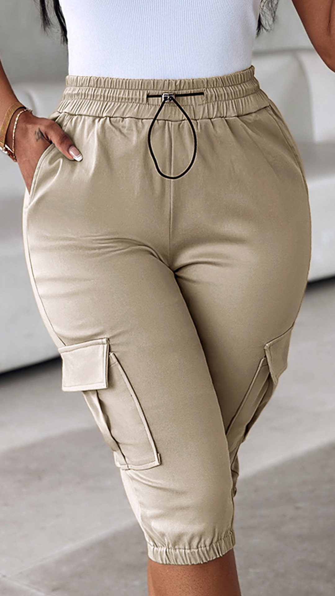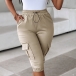 Fashion Solid Color Side Patch Pockets Drawstring Elastic Waist Cargo Pants for Women