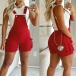 Fashion Solid Color Side Patch Pockets Suspender Romper