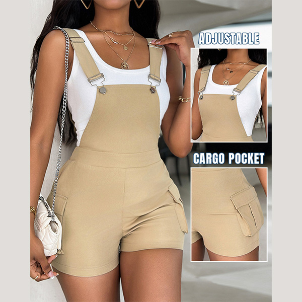 Look at this suspender romper. The solid color, the side patch pockets, and the suspender straps create a versatile and eye-catching look that can be easily adapted to a variety of occasions and personal styles. Wanna have one?