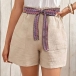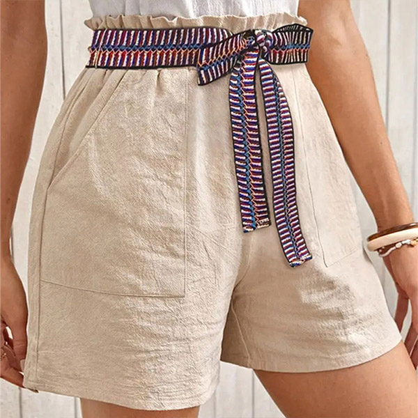 These short features solid color, slant pockets and belt, which provides a clean, timeless aesthetic that can be seamlessly integrated into a wide range of outfits and personal styles.