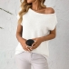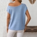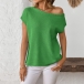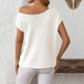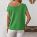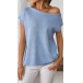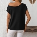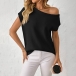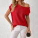 How about this shirt? The slant shoulder design offers a modern and stylish twist to the classic cap sleeve silhouette, creating a unique and eye-catching look. Pair it with high-waisted trousers and heels for a polished and sophisticated ensemble, or wear it with jeans and sneakers for a casual yet trendy look.