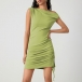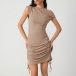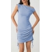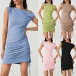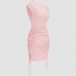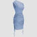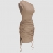 Fashion Solid Color Slant Shoulder Side Drawstring Bodycon Dress