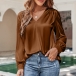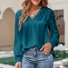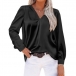 This shirt features a solid color design, offering versatility in styling options. The V-neckline adds a touch of femininity and elegance. The satin fabric gives a lustrous and smooth appearance, adding a luxurious vibe to the shirt. The sleeve-tabs allow you to roll up and secure the sleeves for a more relaxed and casual look. Hope you like it.