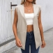 Fashion Solid Color Sleeveless Artificial Leather PU Vest