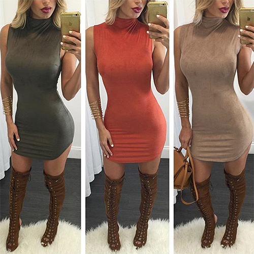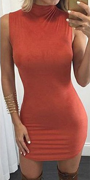 This dress features solid color style,its super fit silhouette gives you the chance to show off