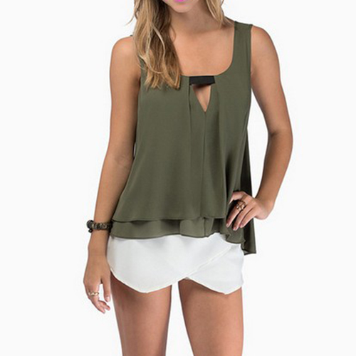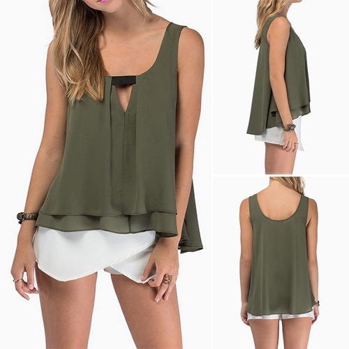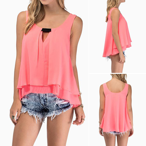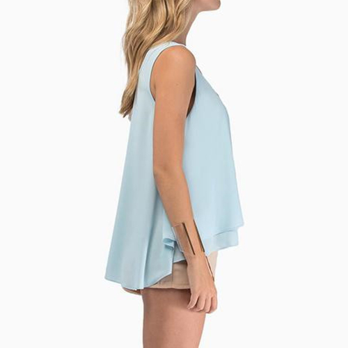 Solid color style,crafted from breezy chiffon material,with sleeveless and round neck design,