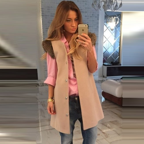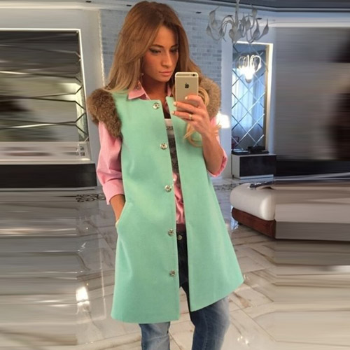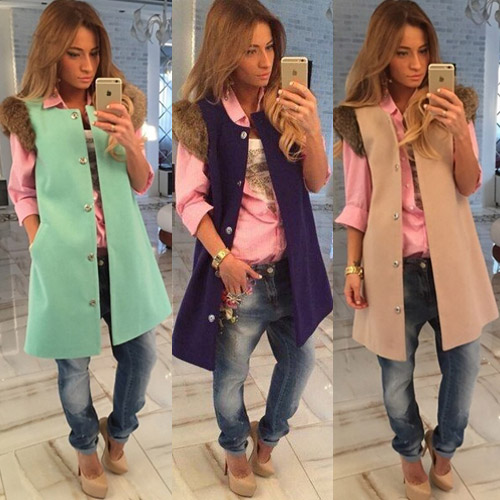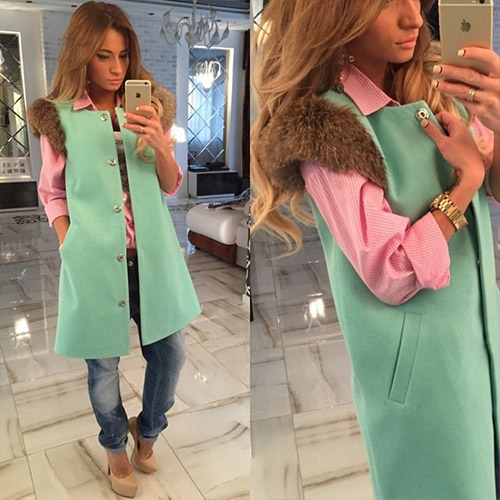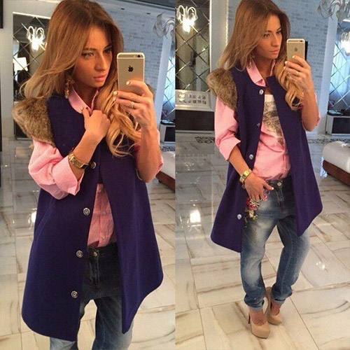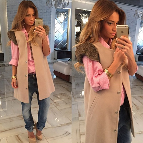 slanted front pockets, and faux fur cuff - to make it a timeless favorite. Solid color with a longline
