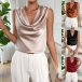 Fashion Solid Color Sleeveless Cowl Neck Top