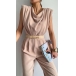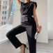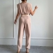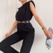 Look at this jumpsuit! The sleeveless, draped neckline is both stylish and flattering, while the belt cinches in the waist for a figure-hugging silhouette. Color:Black,Khaki,Brown, which one do you like?