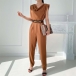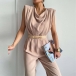 Fashion Solid Color Sleeveless Draped Neckline Jumpsuit with Belt