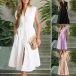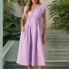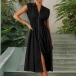 Fashion Solid Color Sleeveless Front Zipper V-neck Front Slit Smocked High-rise Side Pocket Dress