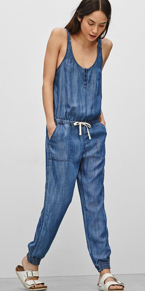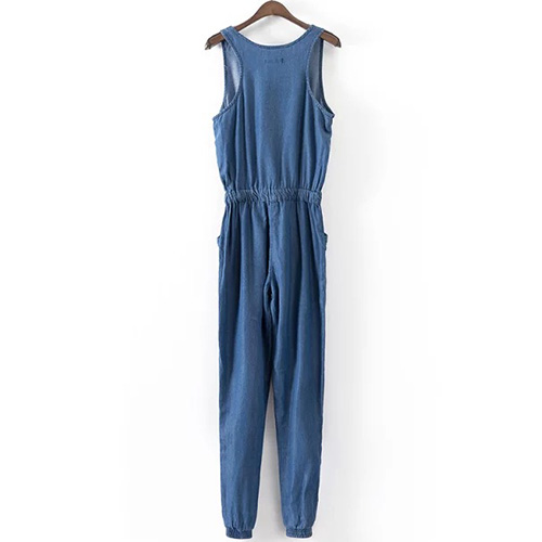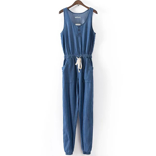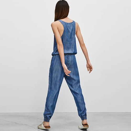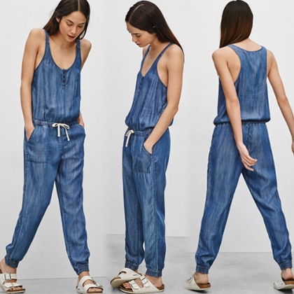 Slip into this sleeveless denim jumpsuit,you would achieve a stylish and charming dress up.