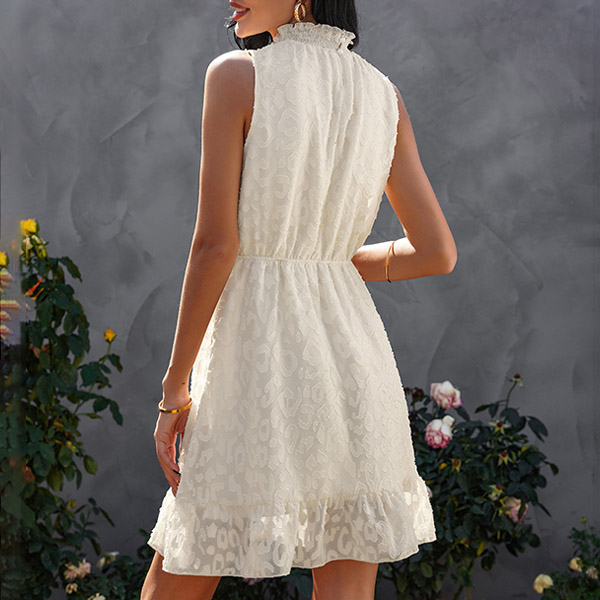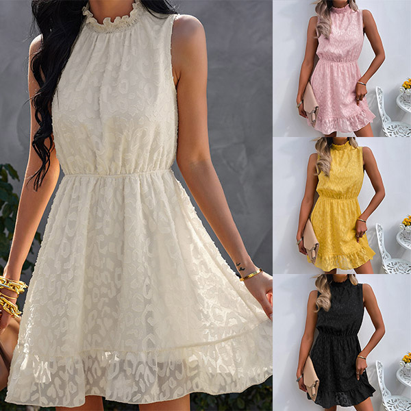 Fashion Solid Color Sleeveless Gauze Spliced Mock Neck Fit & Flare Dress