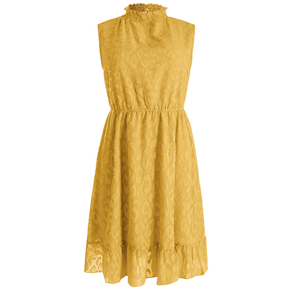 Looking for a versatile and stylish dress that can take you from the office to after-hours? This is the perfect piece for you! Mock neck, sleeveless, fit & flare silhouette, button-loop closures, hope you like it.