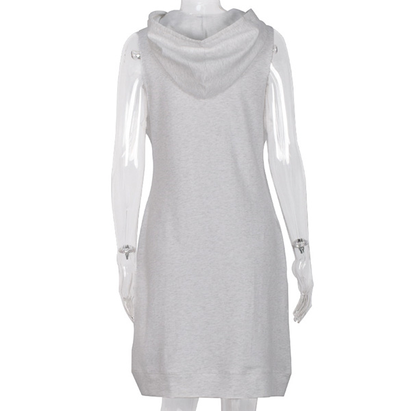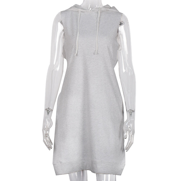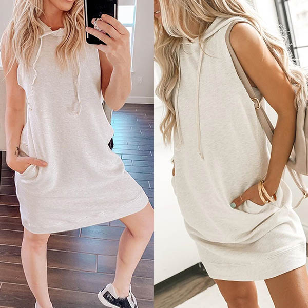 Fashion Solid Color Sleeveless Hooded Sweatshirt Dress