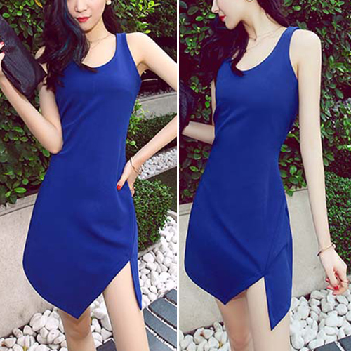 Fashion Solid Color Sleeveless Irregular Hem Dress