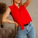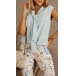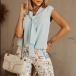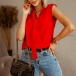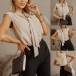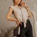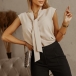 Chemisier à Col en V sans Manches à Lacets de Couleur Unie à la Mode
