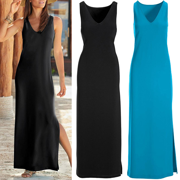 Fashion Solid Color Sleeveless Maxi-dress with Side Slit