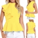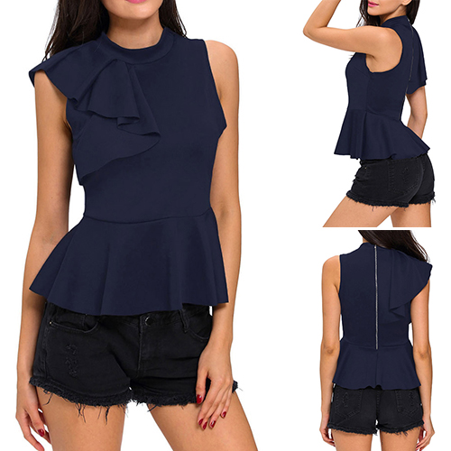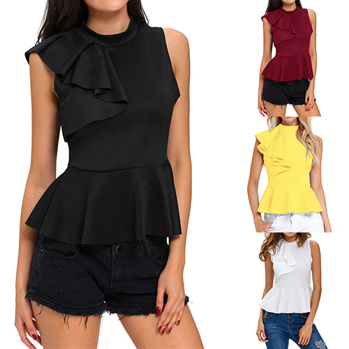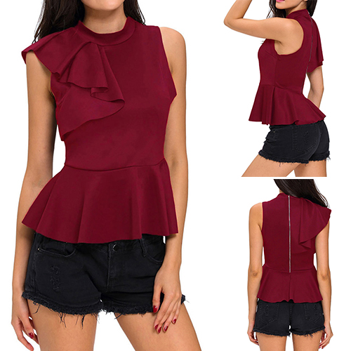 You will gain an unbelievable look with this top. Solid color style,outfitted with sleeveless,mock neck and ruffle details,