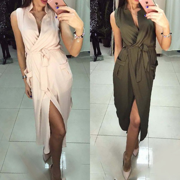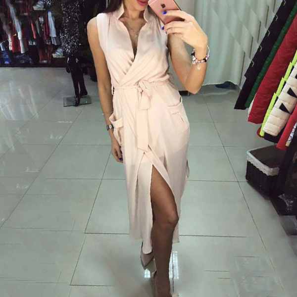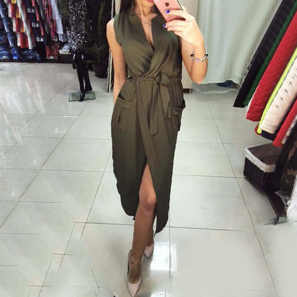 Wanna a different style but still stylish dress? Then we suggest you this piece. Solid color style,designed with sleeveless,