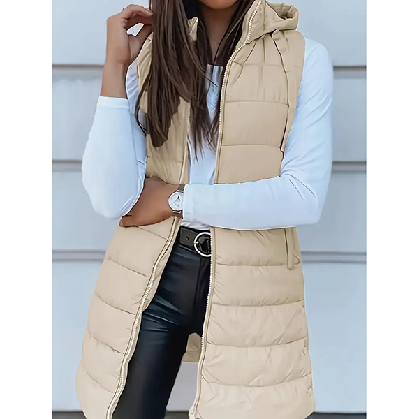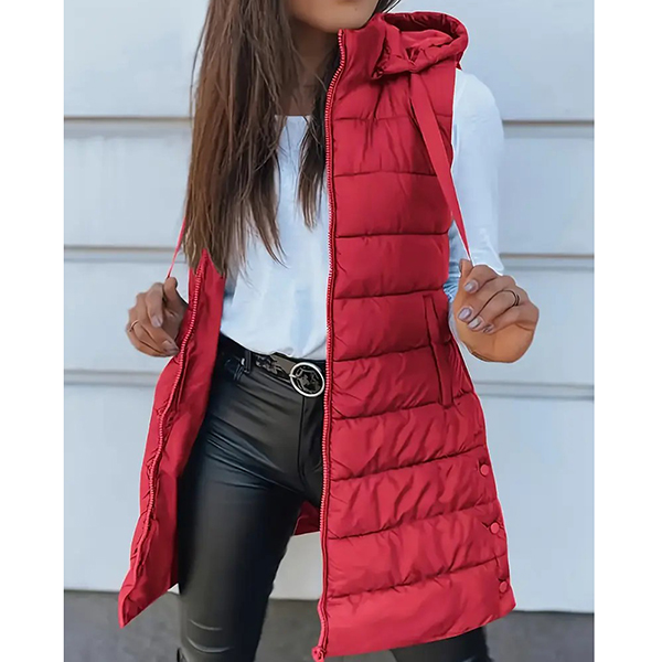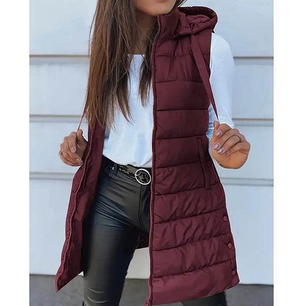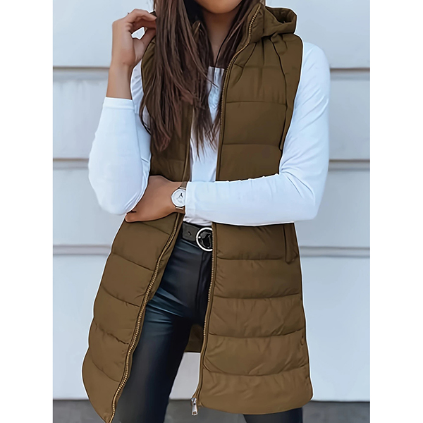 Fashion Solid Color Sleeveless Quilted Hooded Vest