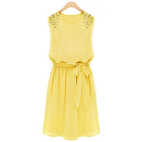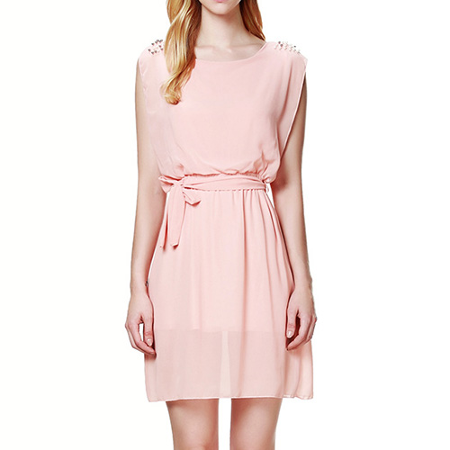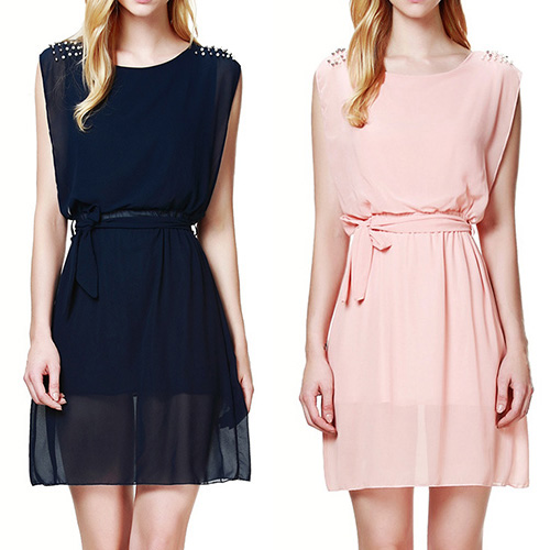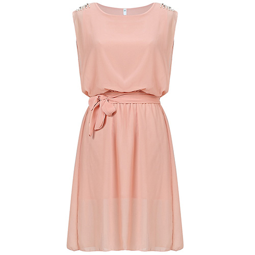 this simple dress by your side. Crafted from soft and breezy chiffon materia,with sleeveless and round neck,simple,
